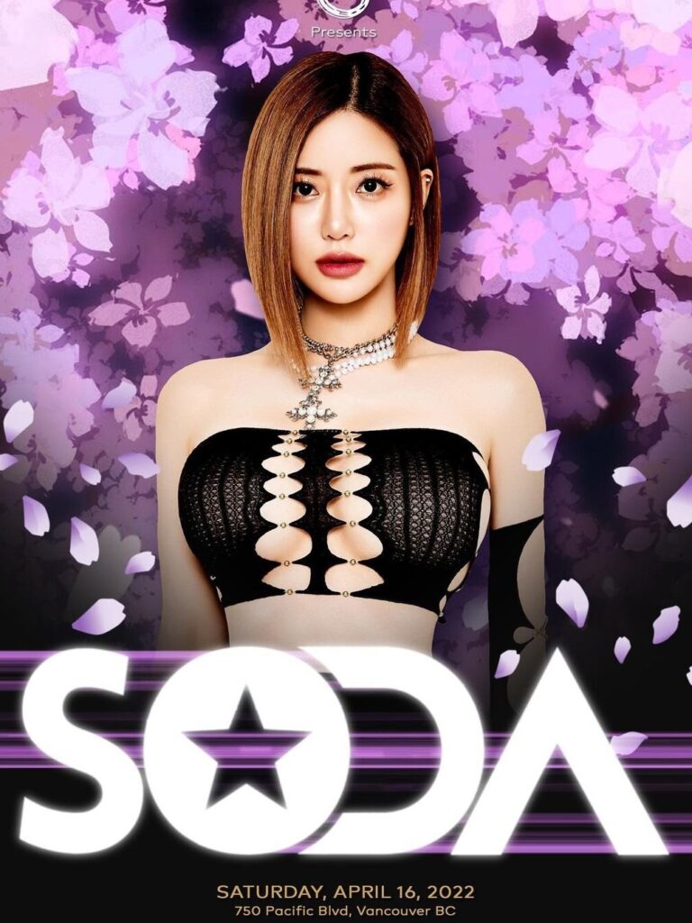 2022年,DJ SODA 在温哥华点燃了全城最躁动的夜晚。当她站上舞台的那一刻,灯光、节拍与尖叫声同时爆发,整个场馆瞬间进入全速状态。她以标志性的电音混搭、毫不留情的节奏切换,把当晚的能量推到最高点;每一次 Drop 都让观众跳到失控,每一次互动都让气氛再升级。
